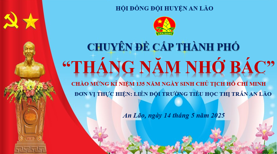 Thực hiện chương trình công tác Đội và phong trào thiếu nhi năm học 2024-2025 của Liên đội trường TH Thị Trấn An Lão. Nhân dịp kỉ niệm 135 năm ngày sinh của Chủ tịch Hồ Chí Minh vĩ đại (19/5/1890 -19/5/2025). Sáng ngày 14/5/2025 Liên đội trường Tiểu học Thị Trấn An Lão long trọng tổ chức Chuyên đề cấp thành phố:“Tháng Năm nhớ Bác” để khơi dậy những kỉ niệm đẹp và khắc ghi công ơn vĩ đại của vị cha già dân tộc - Chủ tịch Hồ Chí Minh.