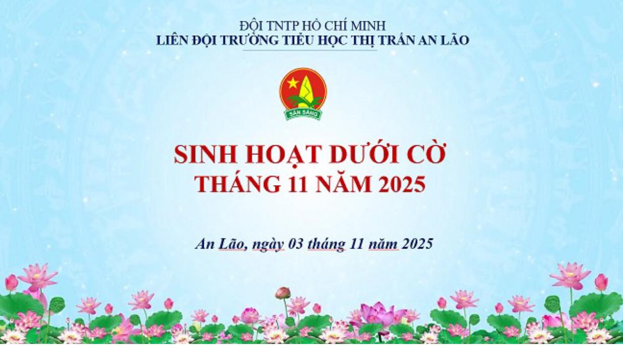 Sáng ngày 03 tháng 11 năm 2025, liên đội trường Tiểu học Thị trấn An Lão tổ chức Sinh hoạt dưới cờ với các nội dung:1. Đánh giá thi đua các hoạt động Tháng 10, tuyên dương khen thưởng 5 tập thể 2D, 3B, 3D, 4B và 4C.