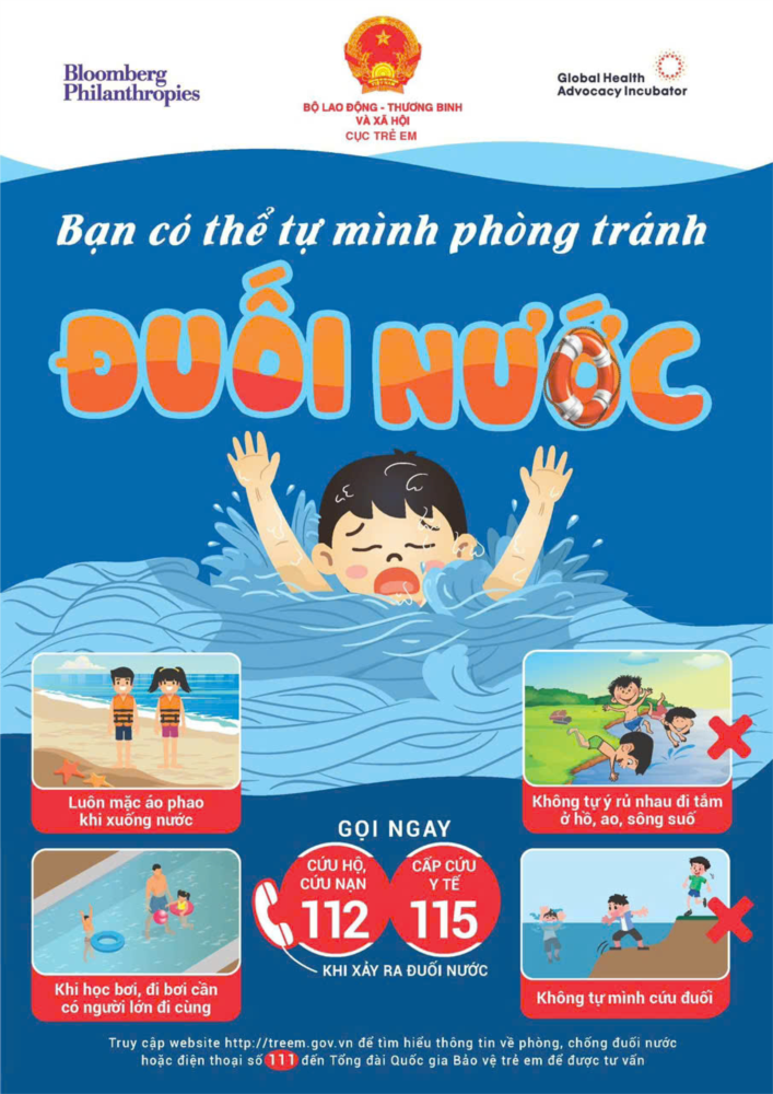 - Trẻ em tắm bể bơi, tắm biển, tắm sông nên mặc áo phao và phải có cha mẹ hoặc người lớn đi cùng để trông coi.