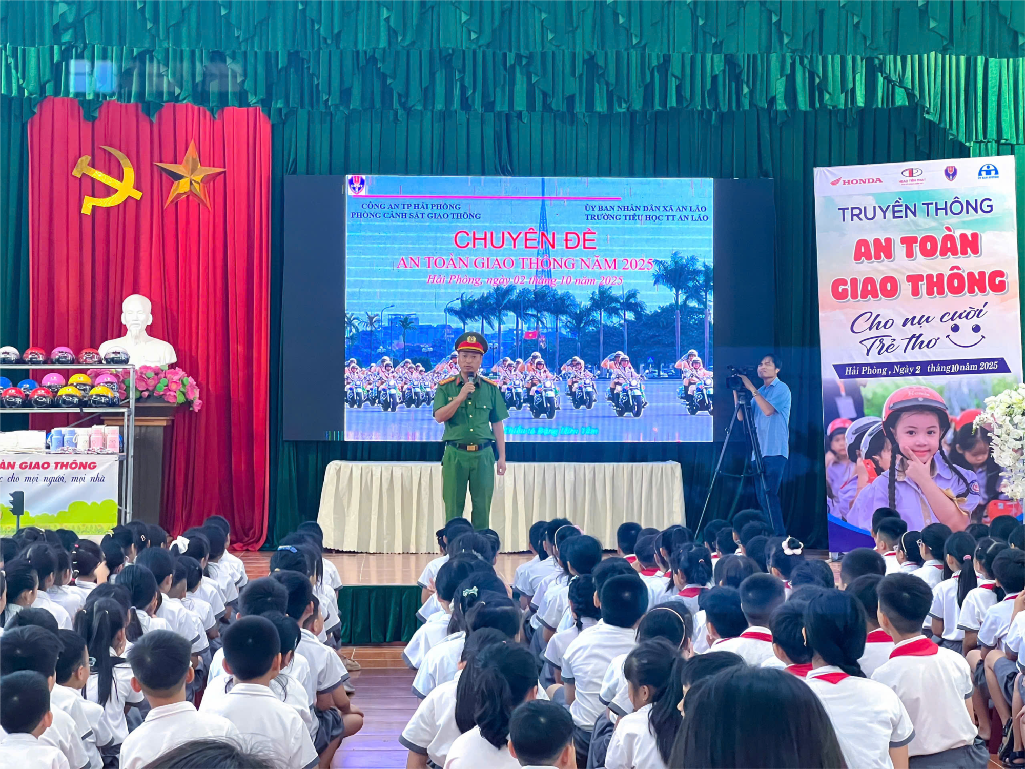 Chiều ngày 02/10, Trường Tiểu học Thị trấn An Lão phối hợp cùng Công an xã, Trạm Cảnh sát giao thông Quang Trung, Phòng PC08 Công an thành phố và Công ty TNHH xe máy và xe đạp Tiến Phát đã tổ chức chuyên đề “Chúng em với an toàn giao thông”.