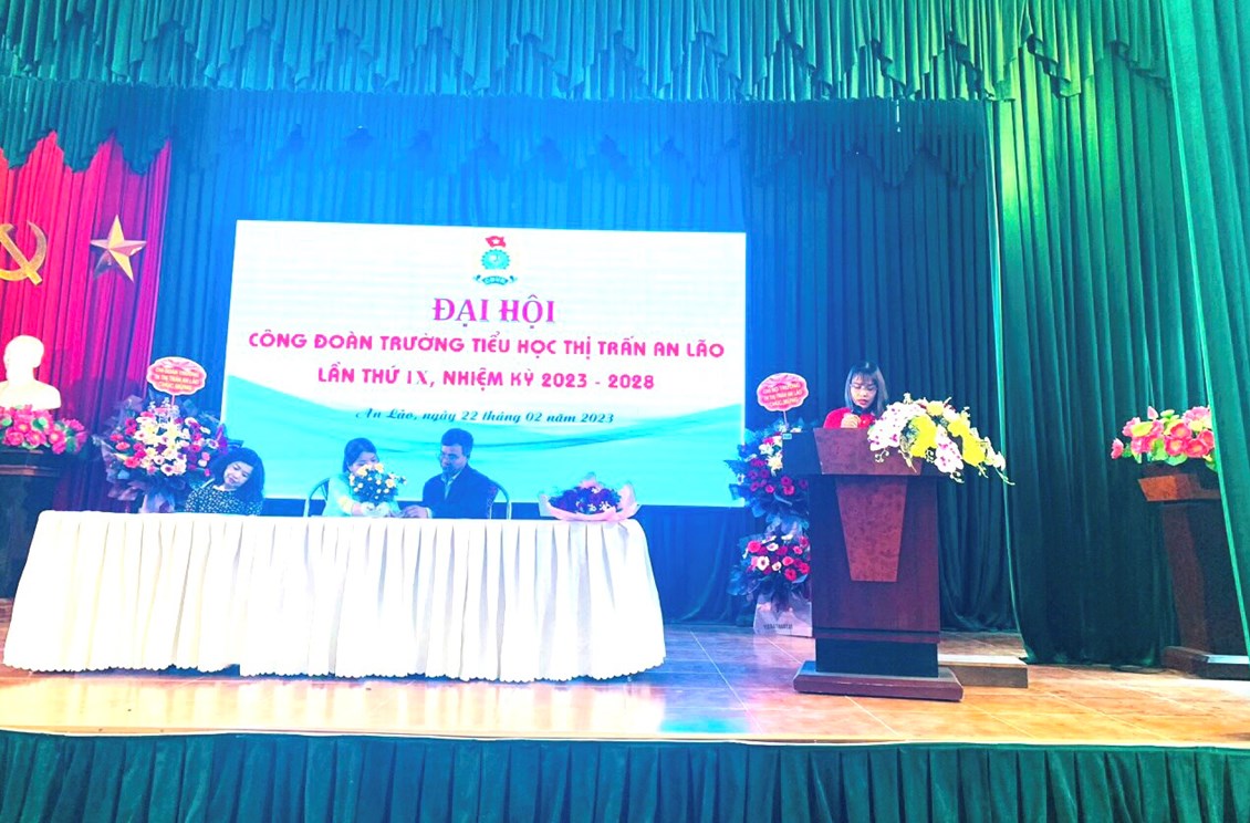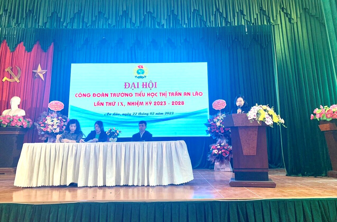 Phát biểu tại Đại hội, đồng chí Phạm Thị Nga - Chủ tịch Liên đoàn Lao động huyện và đồng chí Vũ Hồng Diệp - Bí thư Chi bộ - Hiệu trưởng nhà trường ghi nhận và đánh giá cao nỗ lực, cố gắng, các thành tích đã đạt được của Trường Tiểu học Thị trấn An Lão, trong đó có sự đóng góp của Công đoàn nhà trường. Bên cạnh đó, các đồng chí đề nghị Công đoàn nhà trường cần nghiêm túc rút kinh nghiệm, khắc phục những tồn tại, hạn chế trong nhiệm kỳ vừa qua.chăm lo lợi ích chính đáng của đoàn viên, lấy lợi ích của đoàn viên là một trong những mục tiêu quan trọng để tập hợp, thu hút người lao động đến với tổ chức công đoàn, đặc biệt là quan tâm, chăm lo tới đoàn viên có hoàn cảnh khó khăn. Đổi mới hình thức, nội dung công tác tuyên truyền giáo dục đoàn viên. Tập trung tuyên truyền giáo dục truyền thống yêu ngành, yêu nghề, phát động phong trào thi đua yêu nước phù hợp với đặc điểm tình hình của đơn vị, trọng tâm là phong trào công nhân viên chức lao động chung sức hiện thức hóa khát vọng xây dựng quê hương An Lão văn minh, thịnh vượng giai đoạn 2021-2030.