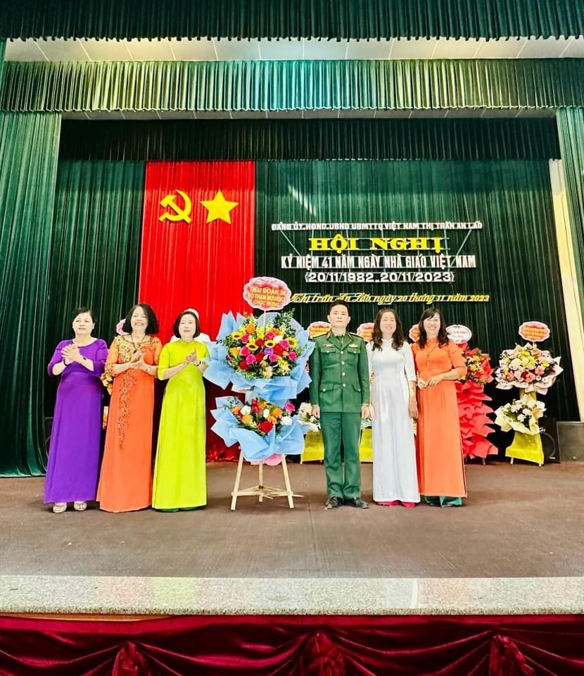 Tại buổi Lễ Kỷ niệm các đồng chí lãnh đạo thị trấn biểu dương, khen thưởng các cô giáo trong nhà trường đã đạt thành tích cao trong năm học 2022 -2023.