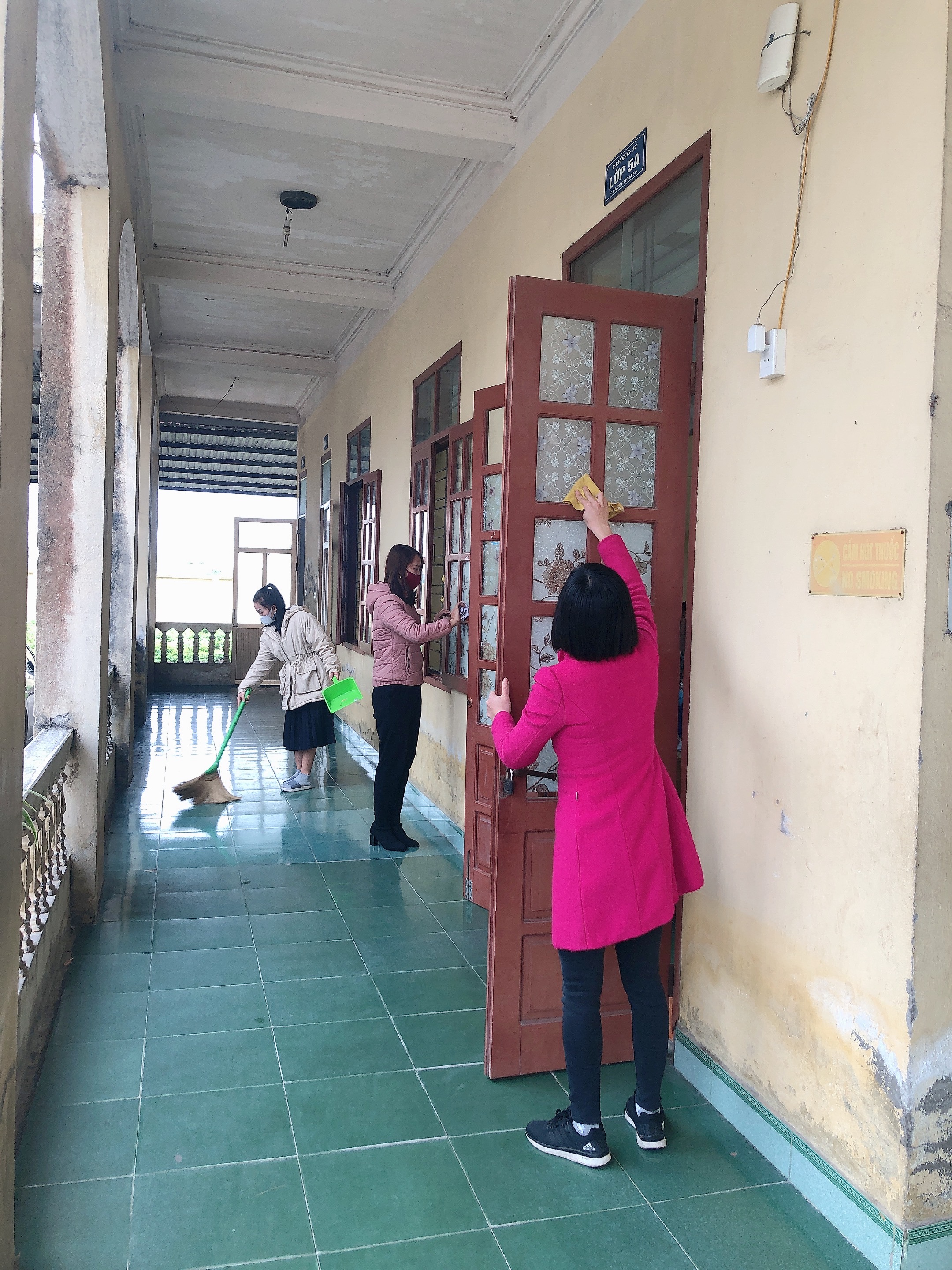 100% giáo viên được huy động dọn dẹp, vệ sinh trường lớp.