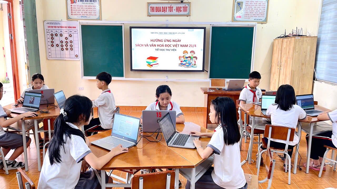 CÁC EM HỌC SINH TRƯỜNG TIỂU HỌC THỊ TRẤN AN LÃO TÍCH CỰC HƯỞNG ỨNG NGÀY SÁCH VÀ VĂN HOÁ ĐỌC VIỆT NAM 21/4
