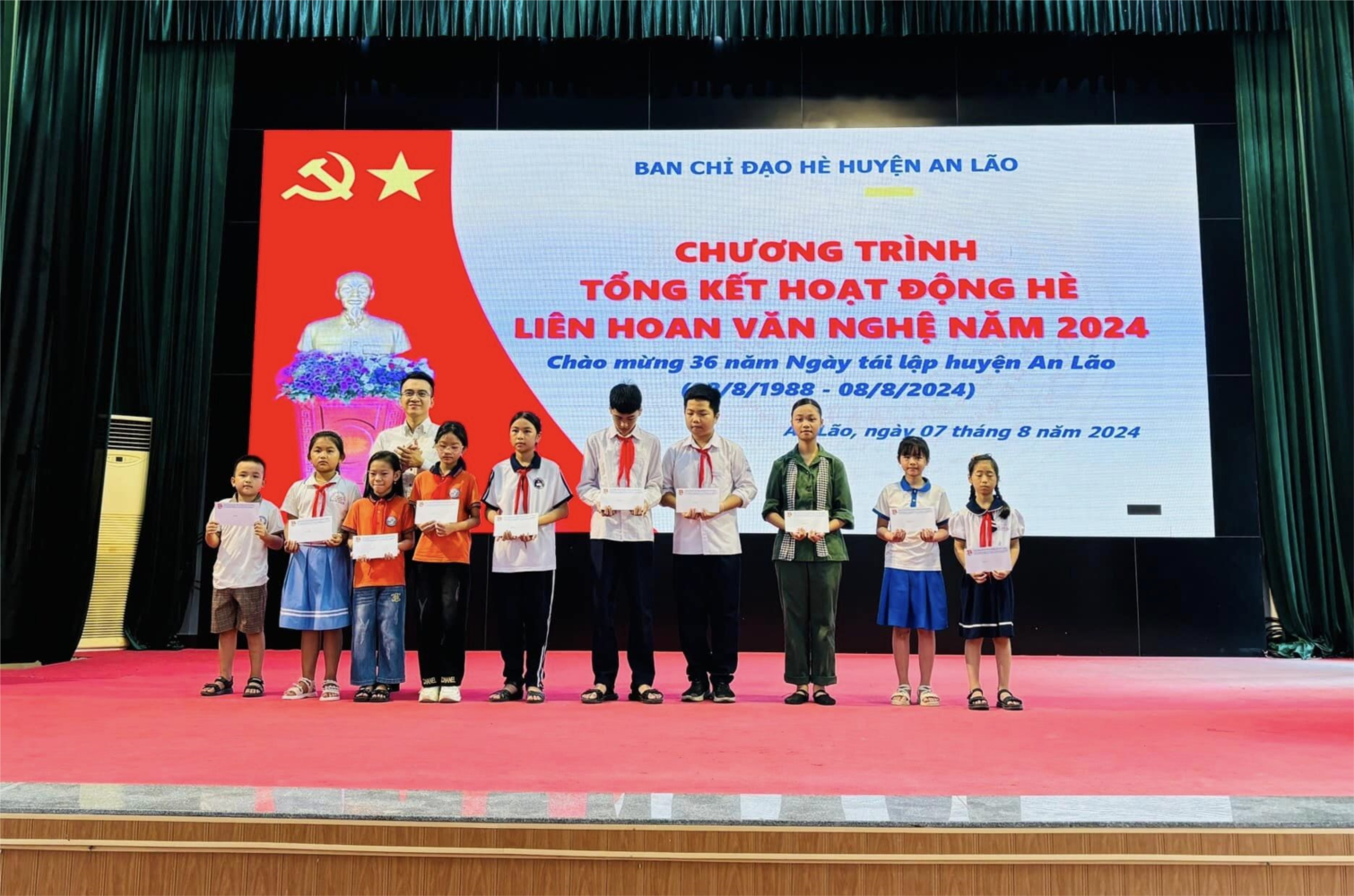 Sáng ngày 7/8/2024, tại chương trình Tổng kết hoạt động hè và Liên hoan văn nghệ năm 2024 kỷ niệm 36 năm ngày tái lập huyện An Lão (8/8/1988 - 8/8/2024), rất vinh dự cho em Đào An An học sinh lớp 4B được nhận học bổng của Thành đoàn Hải Phòng. Xin chúc mừng em!